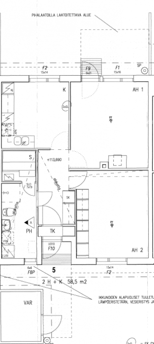 - 2h+k+s, 58,5 m2, vuokra 670 €